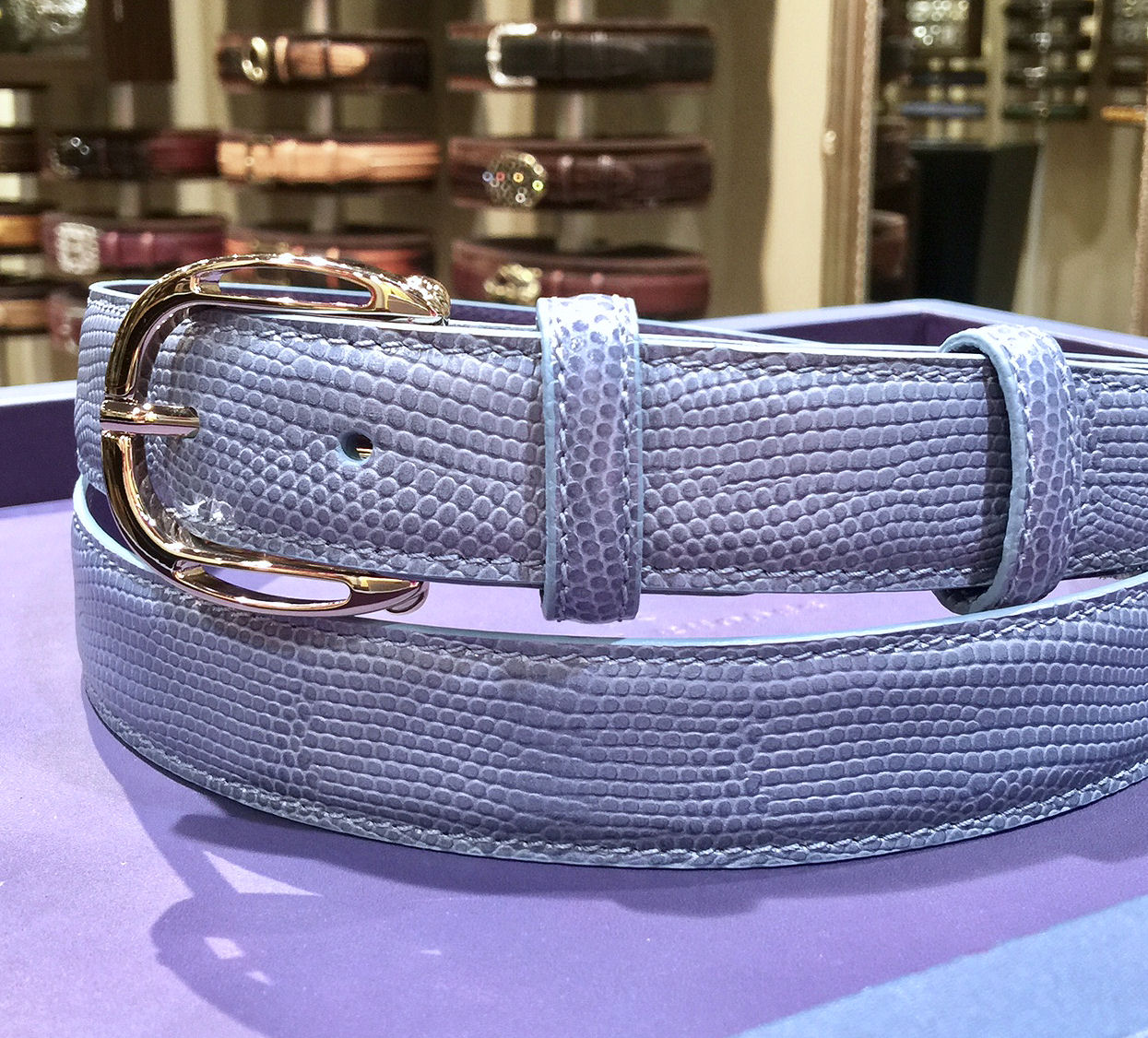 女性用の20mmは、あえてシルバー系バックルではなく、光沢を抑えたピンクゴールドバックルがスタイリングの素敵なポイントになります。
