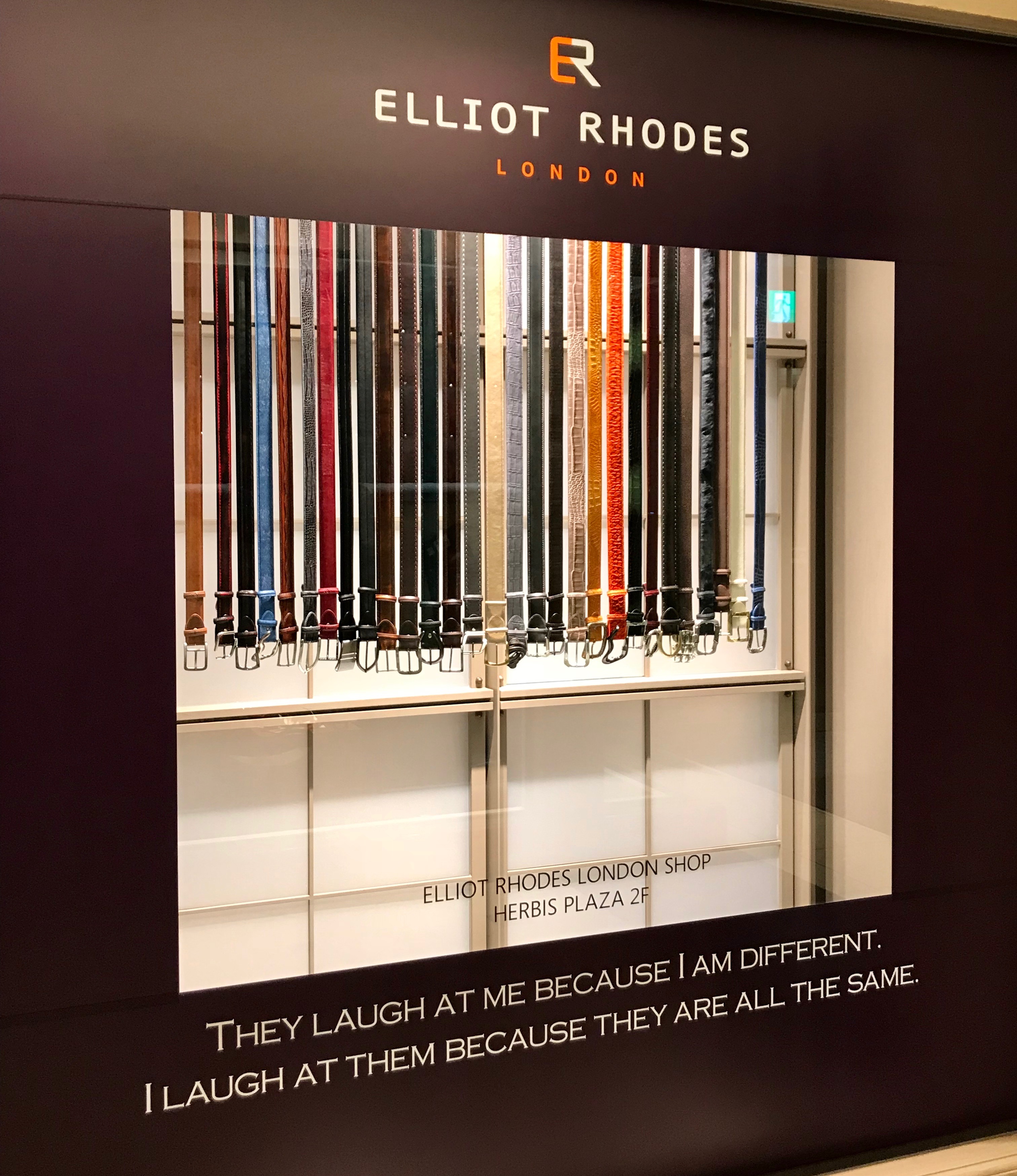 エリオットローズロンドン新春ディスプレイです。 エリオットローズのストラップには、様々なデザイナーからのメッセージがライニングレザーに刻印されています。 そのうちの一つに・・・ They laugh at me because I am different. I laugh at them because they are all the same. ちょっとウケました!