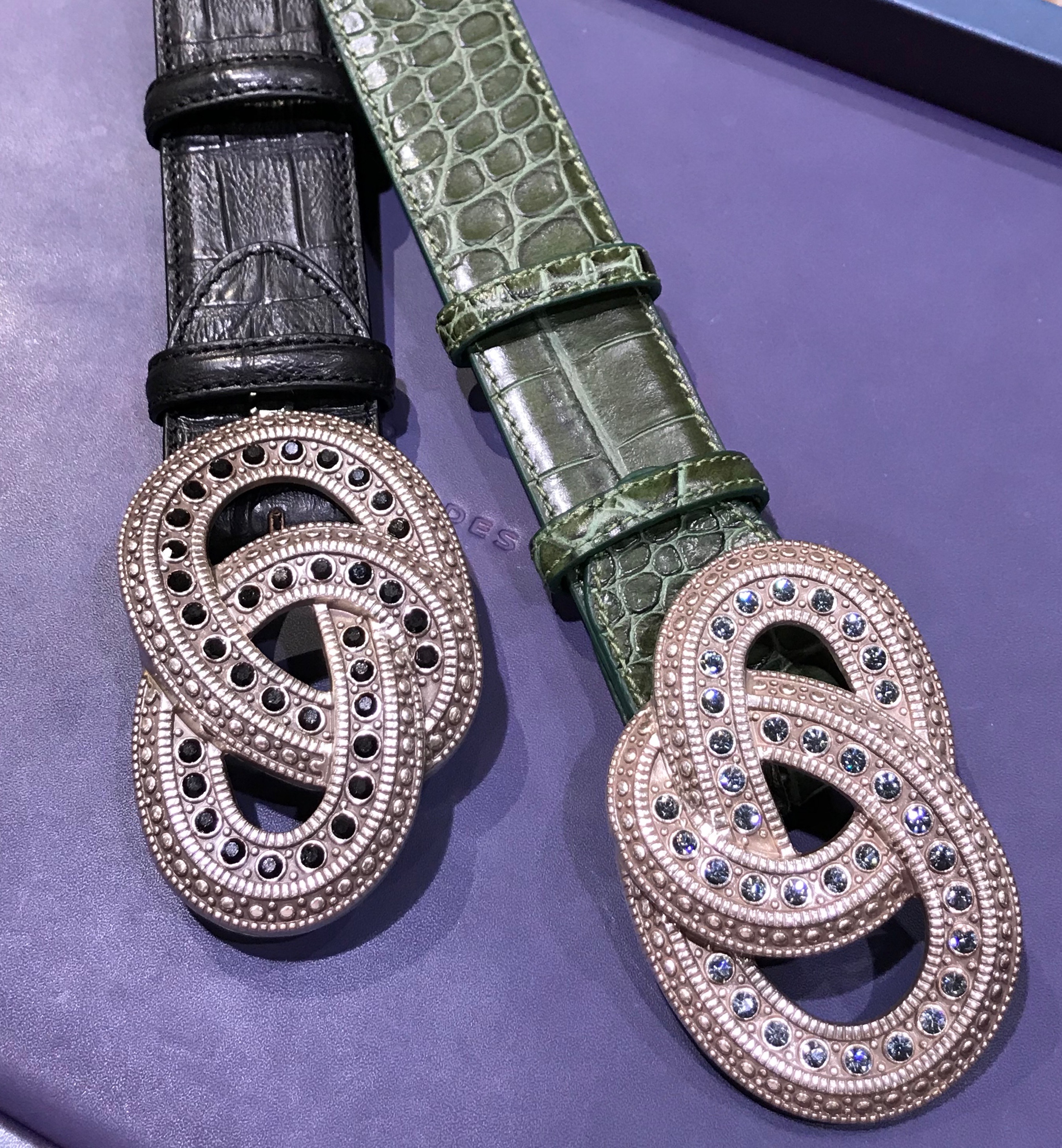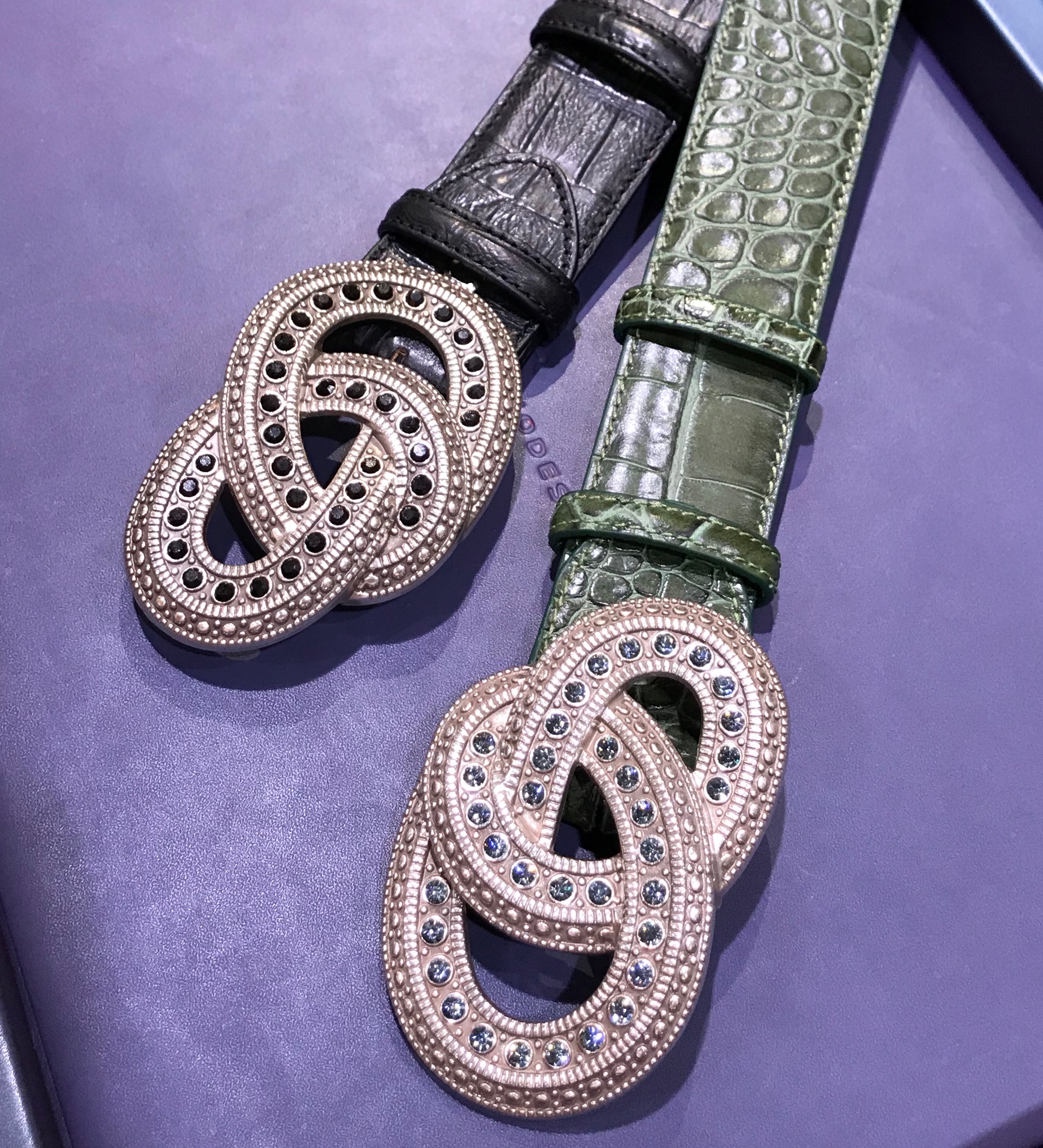 アンティーク装飾にスワロフスキークリスタルが艶やかに並べられたエレガントバックル2色です。