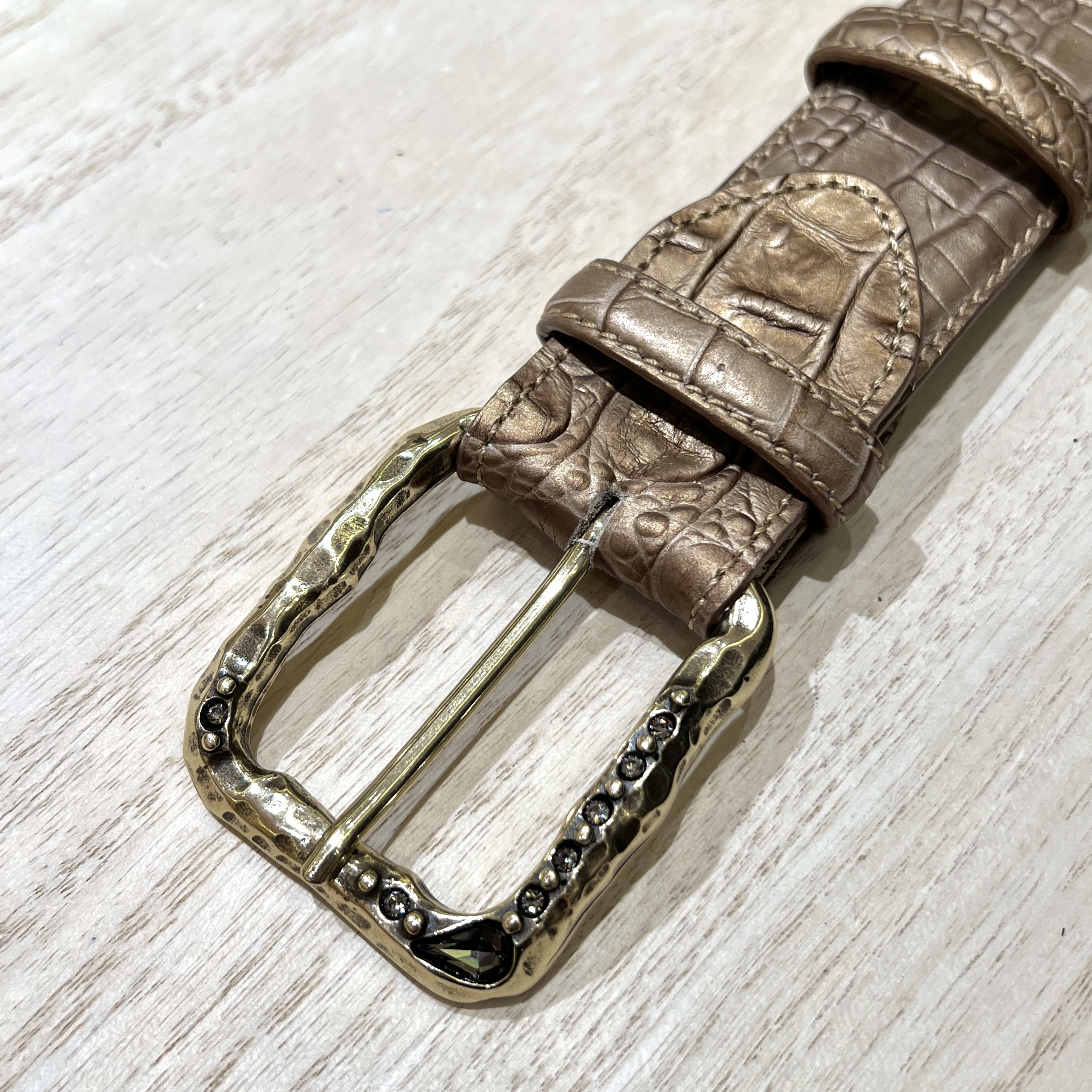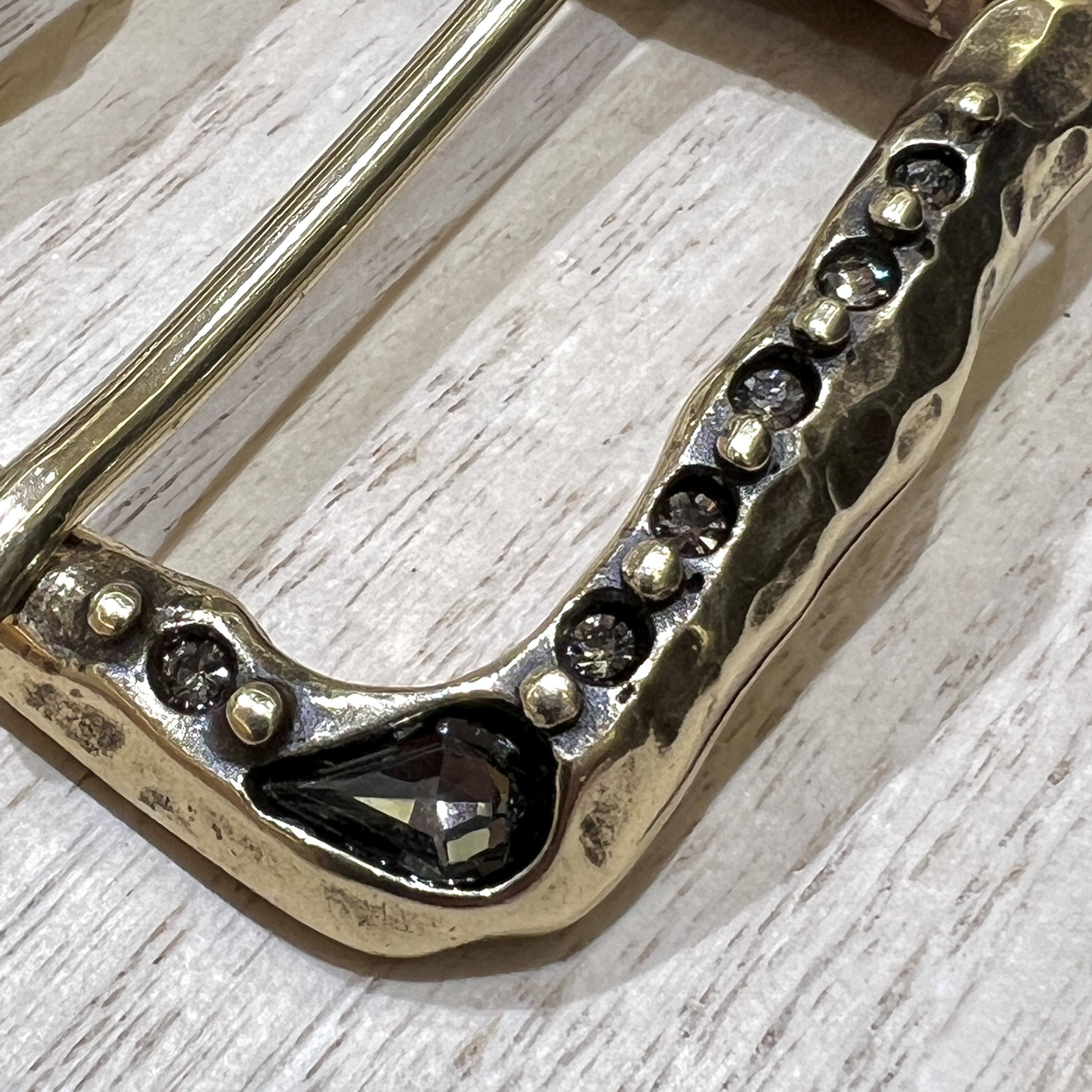 This buckle for 40 mm has a rough finished surface and is encrusted with large and small crystals.A wonderful buckle for accenting denim.