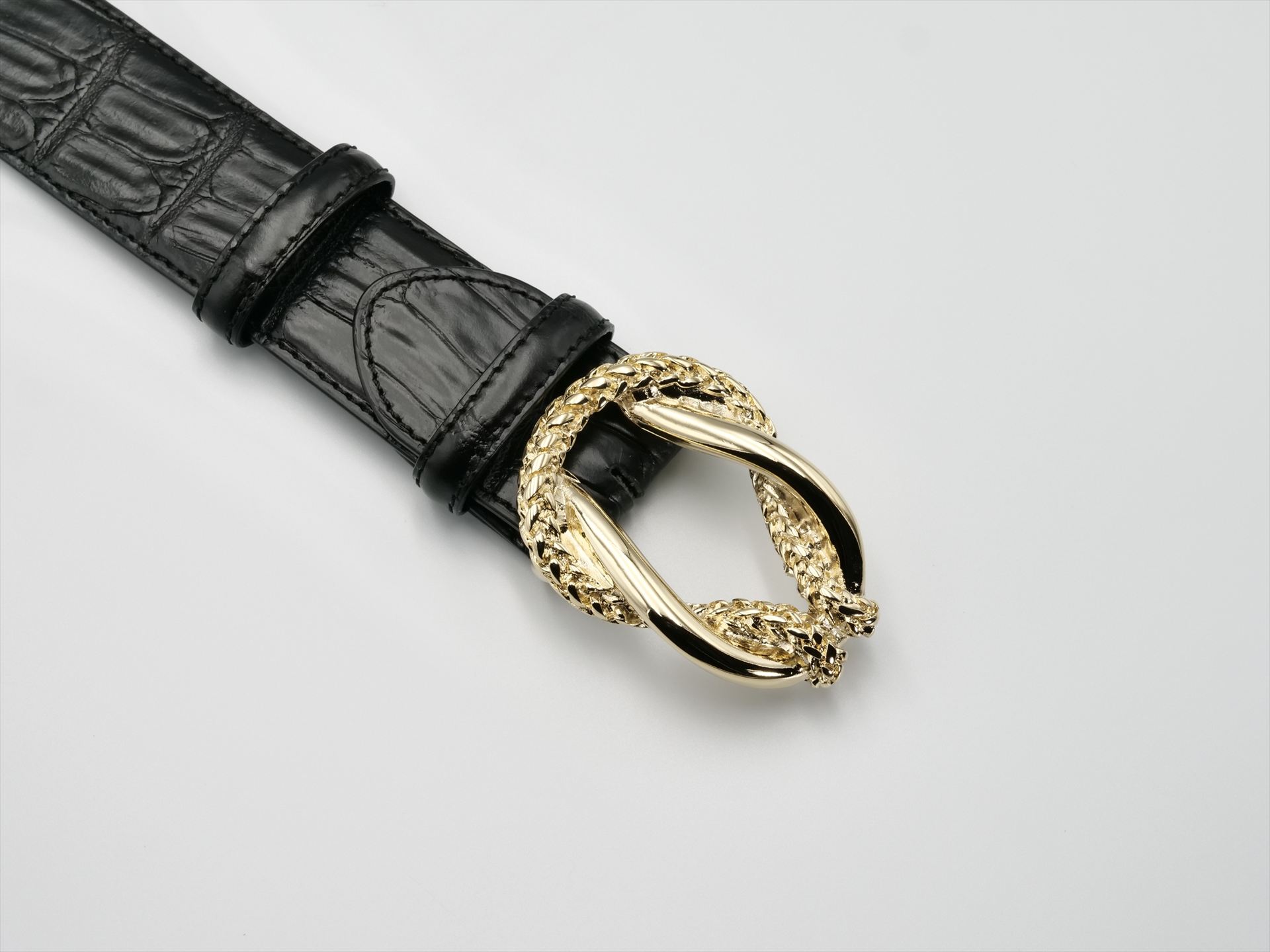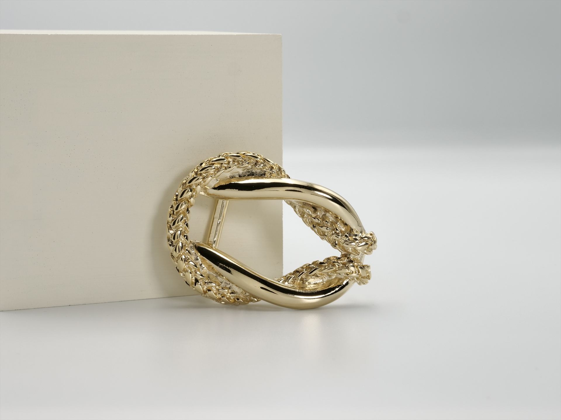 A black buckle with a bowline knot motif is used in sailing ropes. The contrast between the two intertwined ropes is vivid. The buckle height fits on a 40mm strap, making it a great addition to your denim style.