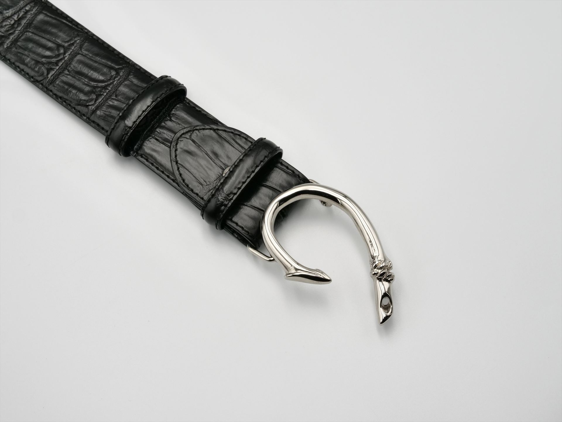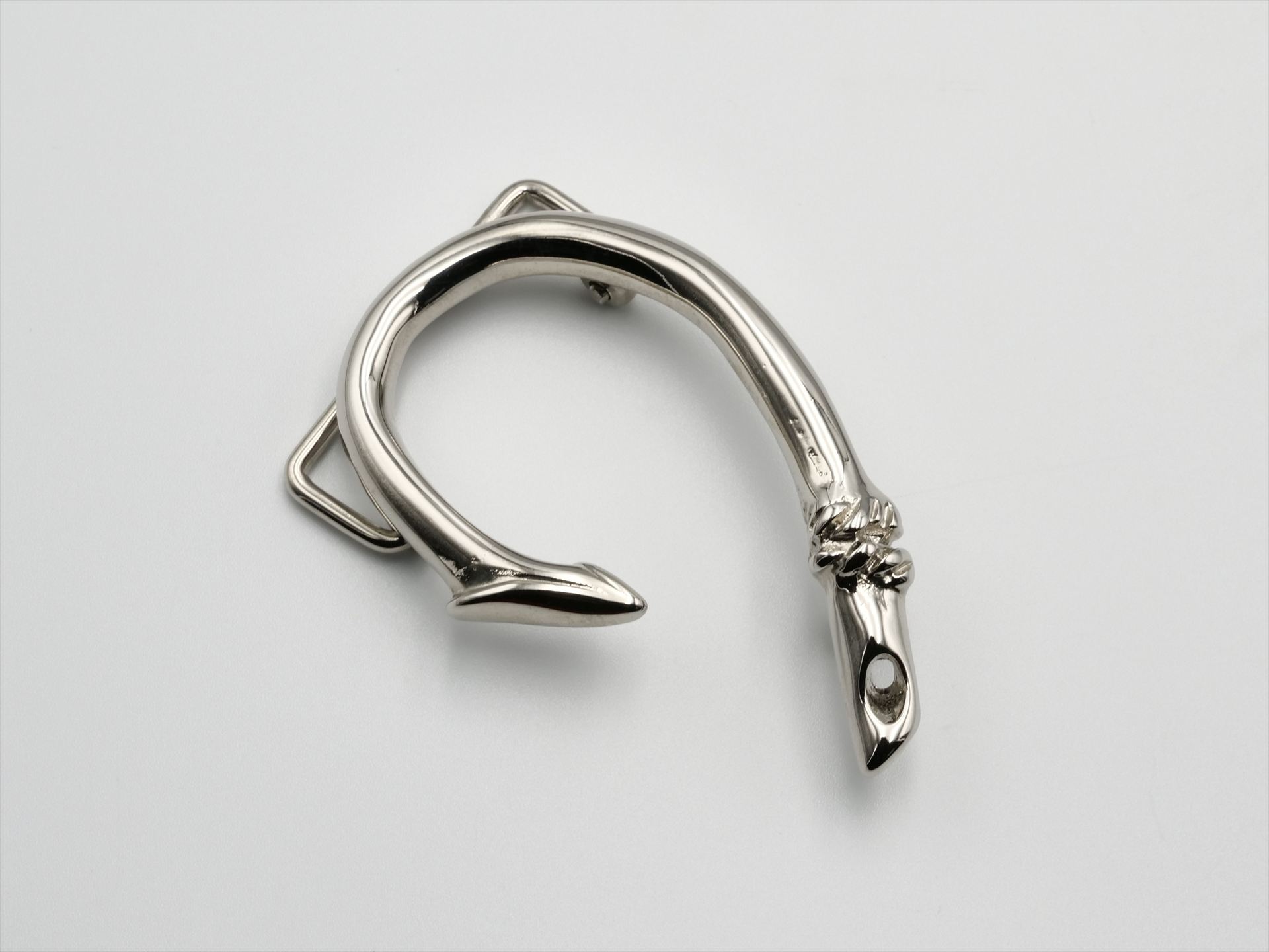It is a must-see design for fishing fans with a fishhook motif. The smooth curves and thin lines blend well with elegant attire. Elliot Rose's playful buckle is precisely reproduced down to the turn and threading.