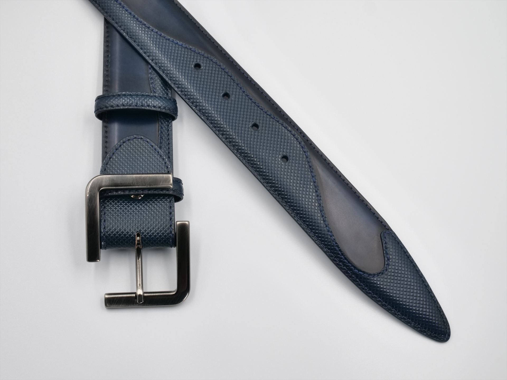 ベルトにイニシャルを入れることができます。イニシャルをさりげなくエンボス加工することで、上品な仕上がりになりますし、もちろんプレゼントとして購入される場合にも、イニシャルを入れることはとても素敵なディテールです。