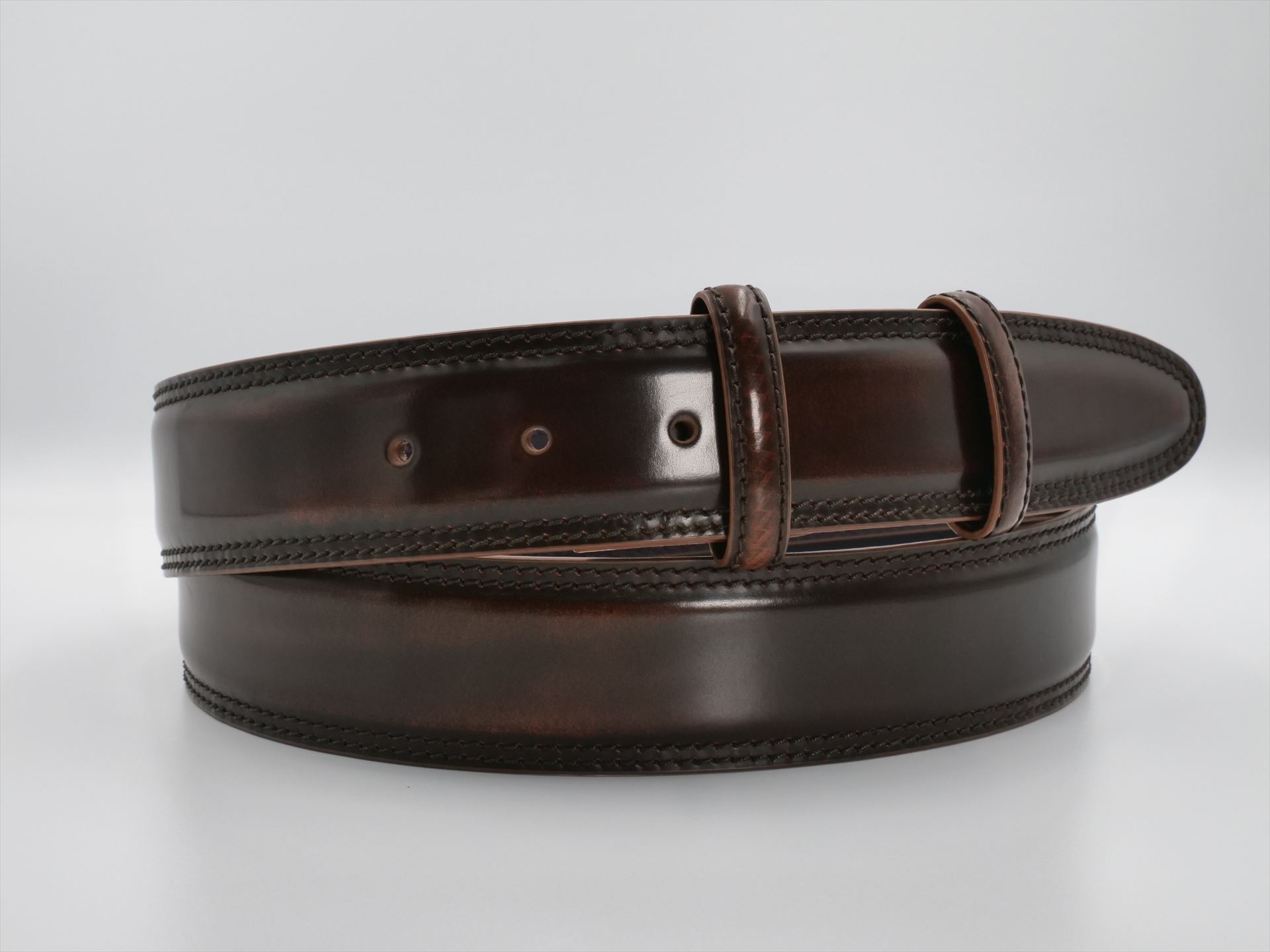 ベルトにイニシャルを入れることができます。イニシャルをさりげなくエンボス加工することで、上品な仕上がりになりますし、もちろんプレゼントとして購入される場合にも、イニシャルを入れることはとても素敵なディテールです。