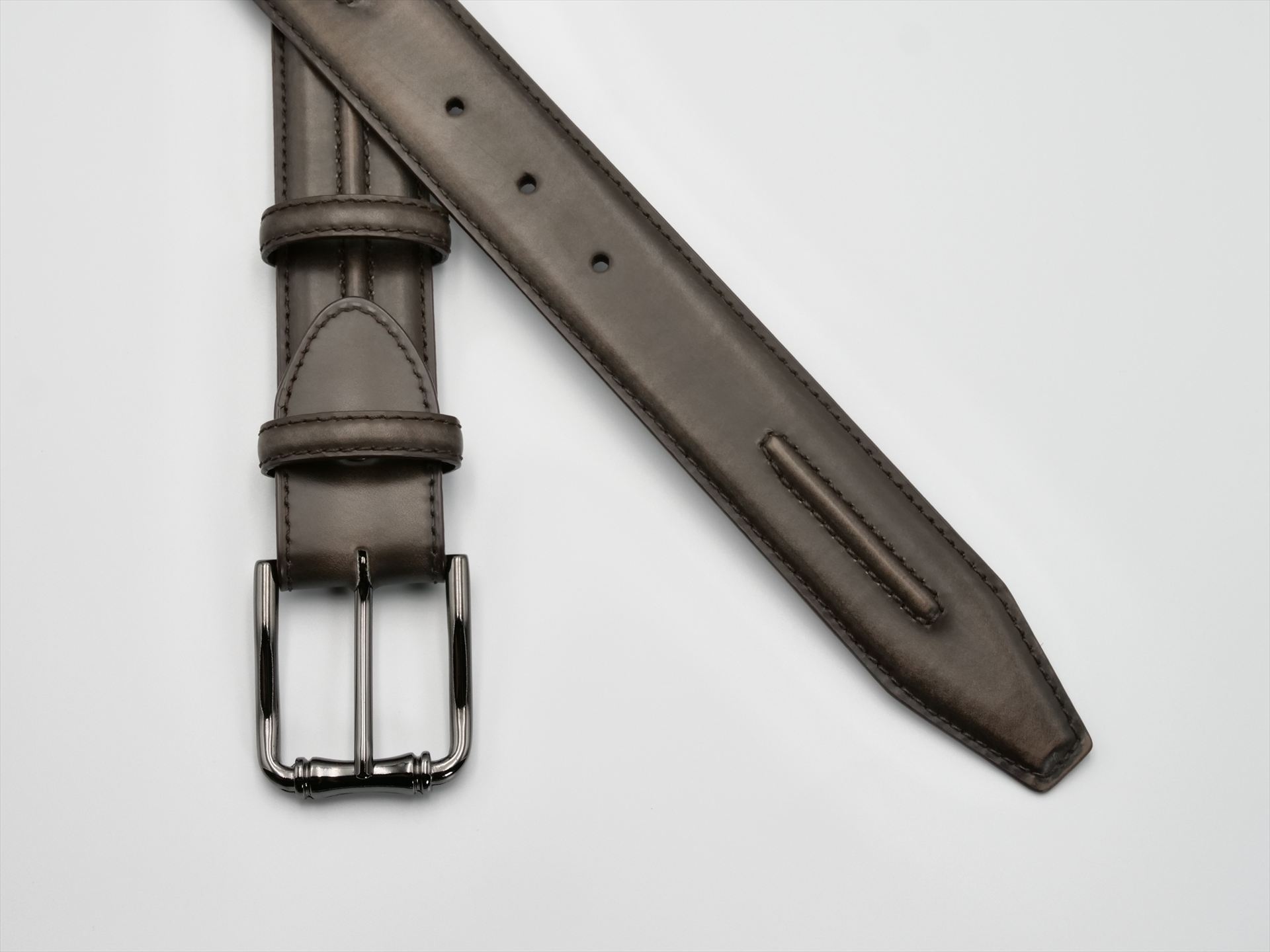 ベルトにイニシャルを入れることができます。イニシャルをさりげなくエンボス加工することで、上品な仕上がりになりますし、もちろんプレゼントとして購入される場合にも、イニシャルを入れることはとても素敵なディテールです。